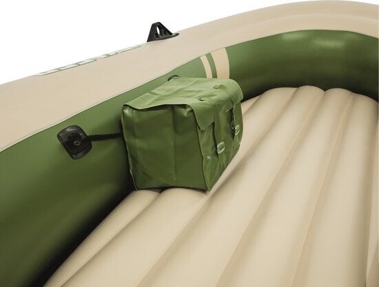 Ruime, opblaasbare visboot. Met eveneens opblaasbare boden en kussens voor meer comfort. Hengelhouders, rondom een koord, handige opbergruime, sterke dollen en een stevig handvat. Incl. 1 paar aluminium riemen en reparatie patch. Geschikt voor 3 personen (max. 260 kg).