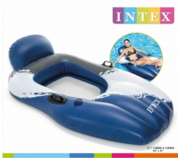 Deze opblaasbare relax loungestoel van Intex is ideaal om te ontspannen in het zwembad. Deze blauw-witte drijfstoel is gemaakt van hoogwaardig vinyl waardoor hij zeer duurzaam is en sterk genoeg is om je te laten drijven. Hij heeft 2 afzonderlijke luchtkamers en robuuste handvatten. Ontspan op het water met deze opblaasbare stoel! Afmetingen: 163 x 104 cm. Met voorgevormd ontwerp voor meer comfort. Voorzien van 1 bekerhouder. Maximaal draaggewicht: 100 kg.